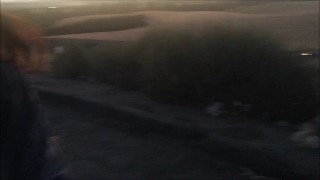 Teen gives head in the car and then finishes it outside over the freeway